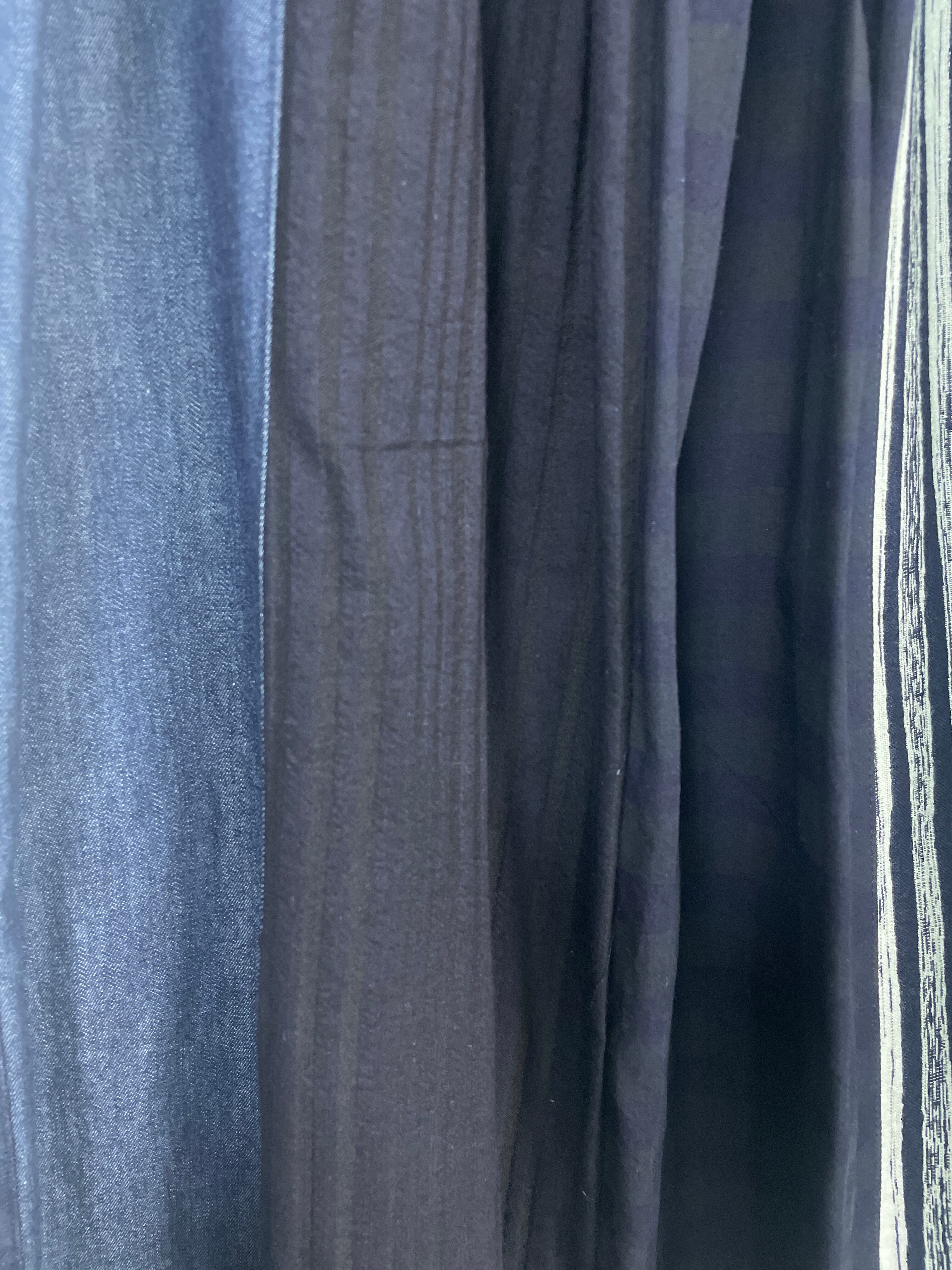 倉敷ならではのインディゴの異素材をぜいたくに使用しています。製造国は日本で、細部までこだわりを持って仕上げています。