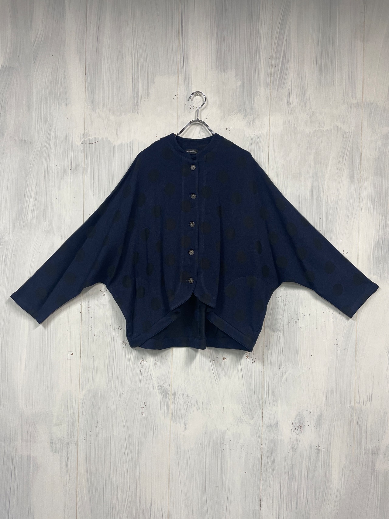 カラーはネイビーで、角度によってドット柄の濃淡が変化するデザインです。サイズはフリーサイズで、多くの体型の方にフィットします。